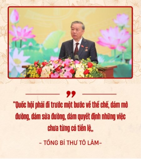 (CL) – Phát biểu tại buổi gặp mặt đại biểu Quốc hội ngày 27/8/2025, Tổng Bí thư Tô Lâm nhấn mạnh: “Quốc hội phải đi trước một bước về thể chế, dám mở đường, dám sửa đường, dám quyết định những việc chưa từng có tiền lệ”.